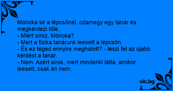 Móricka sir a lépcsőnél, odamegy egy tanár és megkérdezi tőle.