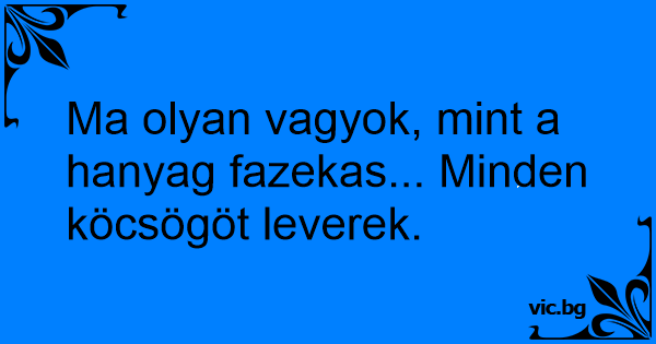 Ma olyan vagyok, mint a hanyag fazekas... Minden köcsögöt leverek.