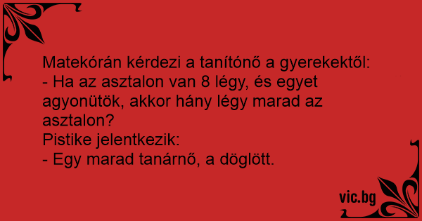 - Ha az asztalon van 8 légy, és egyet agyonütök, akkor hány légy marad az asztalon?