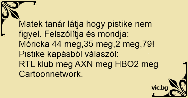 Matek tanár látja hogy pistike nem figyel. Felszólítja és mondja: