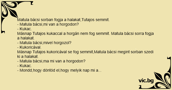 Matula bácsi sorban fogja a halakat,Tutajos semmit.