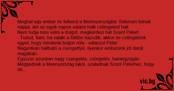 Meghal egy ember és felkerül a Mennyországba. Békésen telnek napjai, ám az egyik napon valami halk csilingelést hall.