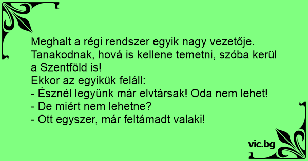Meghalt a régi rendszer egyik nagy vezetője. Tanakodnak, hová is kellene temetni, szóba kerül a Szentföld is!