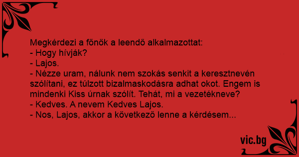 - Nézze uram, nálunk nem szokás senkit a keresztnevén szólítani, ez túlzott bizalmaskodásra adhat okot. Engem is mindenki Kiss úrnak szólít. Tehát, mi a vezetékneve?