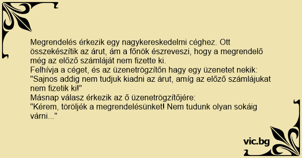 "Sajnos addig nem tudjuk kiadni az árut, amíg az előző számlájukat nem fizetik ki!"