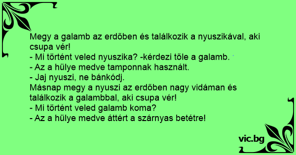 Megy a galamb az erdőben és találkozik a nyuszikával, aki csupa vér!