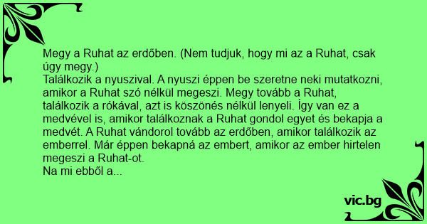 Megy a Ruhat az erdőben. (Nem tudjuk, hogy mi az a Ruhat, csak úgy megy.)