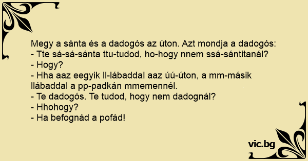 Megy a sánta és a dadogós az úton. Azt mondja a dadogós: