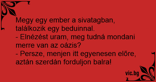 Megy egy ember a sivatagban, találkozik egy beduinnal.