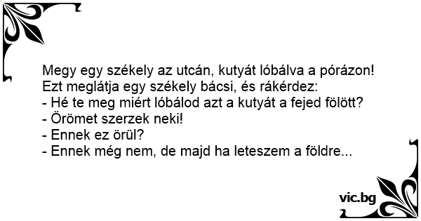 Megy egy székely az utcán, kutyát lóbálva a pórázon!
