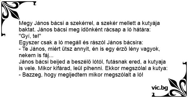Egyszer csak a ló megáll és rászól János bácsira: