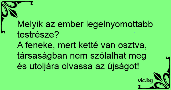 A feneke, mert ketté van osztva, társaságban nem szólalhat meg és utoljára olvassa az újságot!