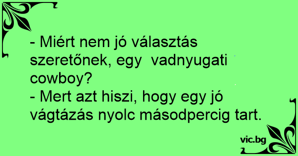 - Mert azt hiszi, hogy egy jó vágtázás nyolc másodpercig таrт.