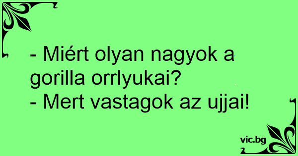 - De ce au gorilele narile Mari? - Pentru ca au degetele groase.