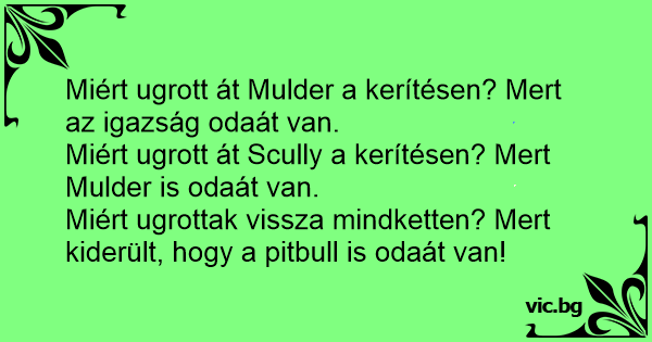 Miért ugrott át Scully a kerítésen? Mert Mulder is odaát van.