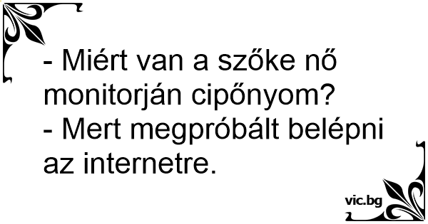 - Miért van a szőke nő monitorján cipőnyom?- Mert megpróbált belépni az internetre. 81 0 0 Szőke nő viccek