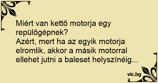 Azért, mert ha az egyik motorja elromlik, akkor a másik motorral ellehet jutni a baleset helyszínéig...