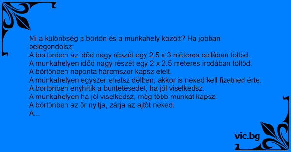 Mi a különbség a börtön és a munkahely között? Ha jobban belegondolsz: