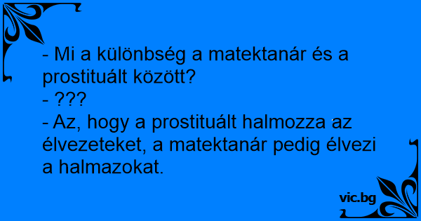 - Az, hogy a prostituált halmozza az élvezeteket, a matektanár pedig élvezi a halmazokat.