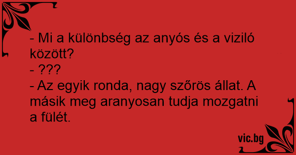 - Mi a különbség az anyós és a viziló között?