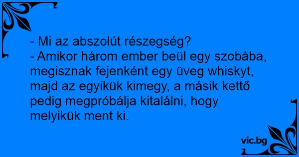 - Amikor három ember beül egy szobába, megisznak fejenként egy üveg whiskyt, majd az egyikük kimegy, a másik kettő pedig megpróbálja kitalálni, hogy melyikük ment ki.