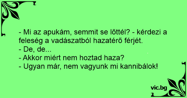 - Mi az apukám, semmit se lőttél? - kérdezi a feleség a vadászatból hazatérő férjét.