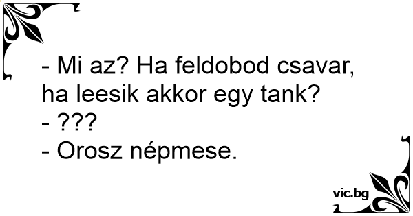 - Mi az? Ha feldobod csavar, ha leesik akkor egy tank?
