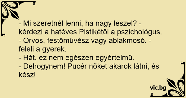 - Mi szeretnél lenni, ha nagy leszel? - kérdezi a hatéves Pistikétől a pszichológus.