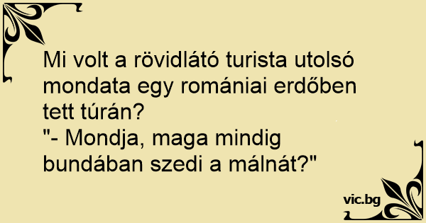 Mi volt a rövidlátó turista utolsó mondata egy romániai erdőben tett túrán?