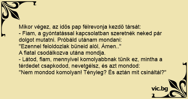 - Fiam, a gyóntatással kapcsolatban szeretnék neked pár dolgot mutatni. Próbáld utánam mondani: