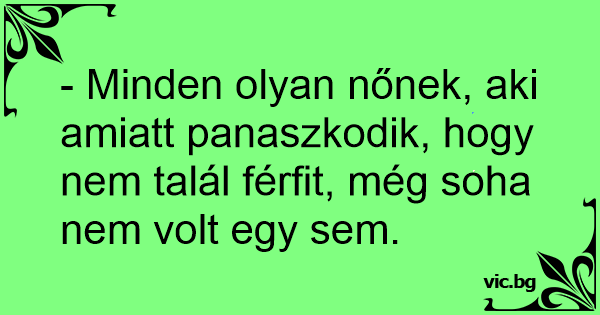 - Minden olyan nőnek, aki amiatt panaszkodik, hogy nem talál férfit, még soha nem volt egy sem.