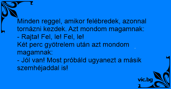 Minden reggel, amikor felébredek, azonnal tornázni kezdek. Azt mondom magamnak: