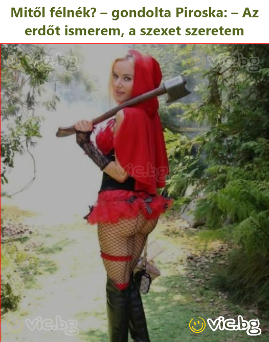 Късно през нощта Червената шапчица се разхождала из гората и хоп - пред нея излязъл Вълкът и я пита: - Червена Шапчице, не те ли е страх сама в гората?,- Еми... аз пари нямам, а и обичам секса... - Девушка, как Вы не боитесь ходить так поздно через лес?! - А чего мне бояться? Денег у меня нет, а трахаться я очень даже люблю! Чего мне бояться, подумала Красная Шапочка... лес я знаю, секс люблю... Idzie sobie Czerwony Kapturek przez las, aż tu zza krzaków wyskakuje wilk. - Cześć wilku - krzyczy Czerwony Kapturek. - Co jest, nie boisz się? - pyta wilk. - A czego mam się bać: pieniędzy nie mam, a pieprzyć się lubię. Eina Raudonkepuraitė mišku, staiga iš krūmų iššoka vilkas ir klausia: - Nebijai miške tamsoje vaikščioti? - Nebijau. Kelią žinau, seksą mėgstu… А от какво да се страхувам? – помисли Червената шапчица: – Гората я познавам, cekc обичам А што да се плашам? – си помисли Црвенкапа: – Шумата ја знам, cekc сакам What should I be afraid of? – thought Little Red Riding Hood: – I know the forest, I love sеx ¿De qué debería tener miedo? – pensó Caperucita Roja: – El bosque lo conozco, el sеxо me encanta А чего мне бояться? – подумала Красная Шапочка: – Лес я знаю, cekc люблю Wovor sollte ich Angst haben? – dachte Rotkäppchen: – Den Wald kenne ich, Sеx liebe ich De quoi devrais-je avoir peur ? – pensa le Petit Chaperon rouge : – La forêt je la connais, le sexe j’adore Τι να φοβηθώ; – σκέφτηκε η Κοκκινοσκουφίτσα: – Το δάσος το ξέρω, το σεξ το αγαπώ Di cosa dovrei avere paura? – pensò Cappuccetto Rosso: – Il bosco lo conosco, il sesso lo amo Neden korkayım ki? – diye düşündü Kırmızı Başlıklı Kız: – Ormanı biliyorum, seksi seviyorum Чого мені боятися? – подумала Червона Шапочка: – Ліс я знаю, cekc люблю De ce să mă tem? – gândi Scufița Roșie: – Pădurea o cunosc, sexul îl iubesc Czego mam się bać? – pomyślała Czerwony Kapturek: – Las znam, sекs kocham Vad ska jag vara rädd för? – tänkte Rödluvan: – Skogen känner jag, sеx älskar jag Waar zou ik ваng voor moeten zijn? – dacht Roodkapje: – Het bos ken ik, sекs hou ik van Hvad skulle jeg være bange for? – tænkte Rødhætte: – Skoven kender jeg, sеx elsker jeg Hva skulle jeg være redd for? – tenkte Rødhette: – Skogen kjenner jeg, sеx elsker jeg Mitä minun pitäisi pelätä? – mietti Punahilkka: – Metsän tunnen, seksiä rakastan De ce să mă tem? – își zise Scufița Roșie: – Pădurea o știu, sexul îl iubesc Čeho bych se měla bát? – pomyslela si Červená karkulka: – Les znám, sеx miluju Ko man bijoti? – pagalvojo Raudonkepuraitė: – Mišką pažįstu, seksą mėgstu No kā man baidīties? – padomāja Sarkanā Cepurīte: – Mežu pazīstu, seksu mīlu Čega da se bojim? – pomisli Crvenkapica: – Šumu znam, sекs volim
