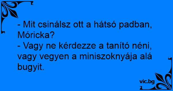 - Vagy ne kérdezze a tanító néni, vagy vegyen a miniszoknyája alá bugyit.