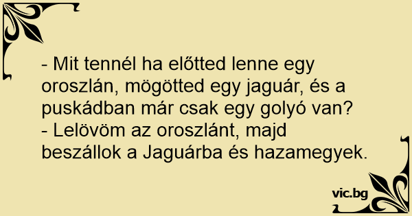 - Mit tennél ha előtted lenne egy oroszlán, mögötted egy jaguár, és a puskádban már csak egy golyó van?
