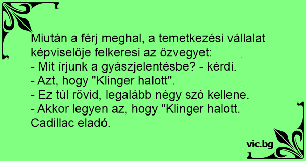 - Akkor legyen az, hogy "Klinger halott. Cadillac eladó.