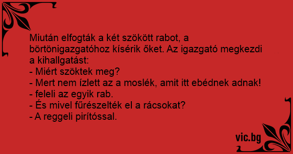 - Mert nem ízlett az a moslék, amit itt ebédnek adnak! - feleli az egyik rab.