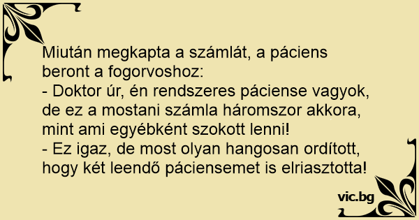 - Doktor úr, én rendszeres páciense vagyok, de ez a mostani számla háromszor akkora, mint ami egyébként szokott lenni!
