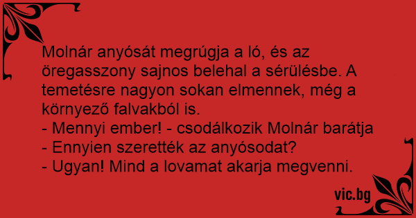 - Mennyi ember! - csodálkozik Molnár barátja - Ennyien szerették az anyósodat?