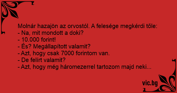 Molnár hazajön az orvostól. A felesége megkérdi tőle: