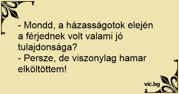 - Mondd, a házasságotok elején a férjednek volt valami jó tulajdonsága?
