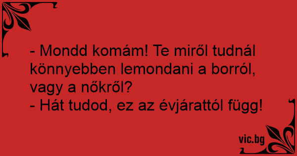 - Mondd komám! Te miről tudnál könnyebben lemondani a borról, vagy a nőkről?