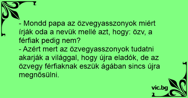 - Mondd papa az özvegyasszonyok miért írják oda a nevük mellé azt, hogy: özv, a férfiak pedig nem?