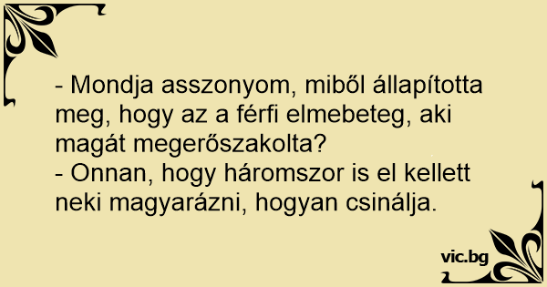 - Mondja asszonyom, miből állapította meg, hogy az a férfi elmebeteg, aki magát megerőszakolta?