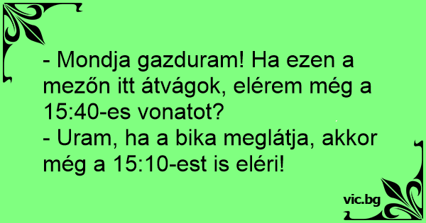 - Mondja gazduram! Ha ezen a mezőn itt átvágok, elérem még a 15:40-es vonatot?