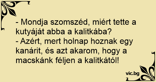- Mondja szomszéd, miért тетте a kutyáját abba a kalitkába?
