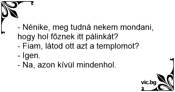 - Nénike, meg tudná nekem mondani, hogy hol főznek itt pálinkát?
