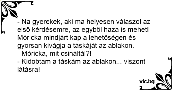 - Na gyerekek, aki ma helyesen válaszol az első kérdésemre, az egyből haza is mehet!