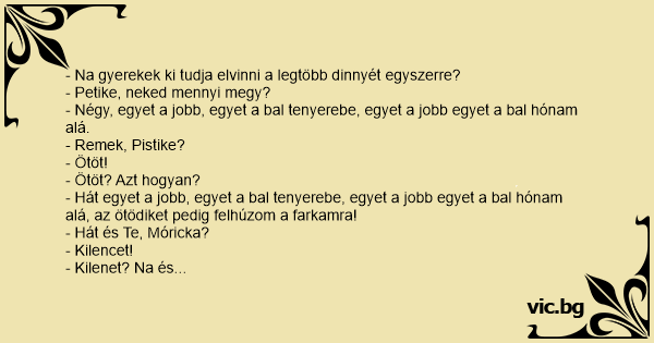 - Hát, egyet a jobb, egyet a bal tenyerebe, egyet a jobb egyet a bal hónam alá, és a Pistit meg felhúzom a farkamra!