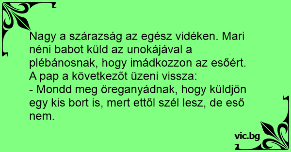 - Mondd meg öreganyádnak, hogy küldjön egy kis bort is, mert ettől szél lesz, de eső nem.